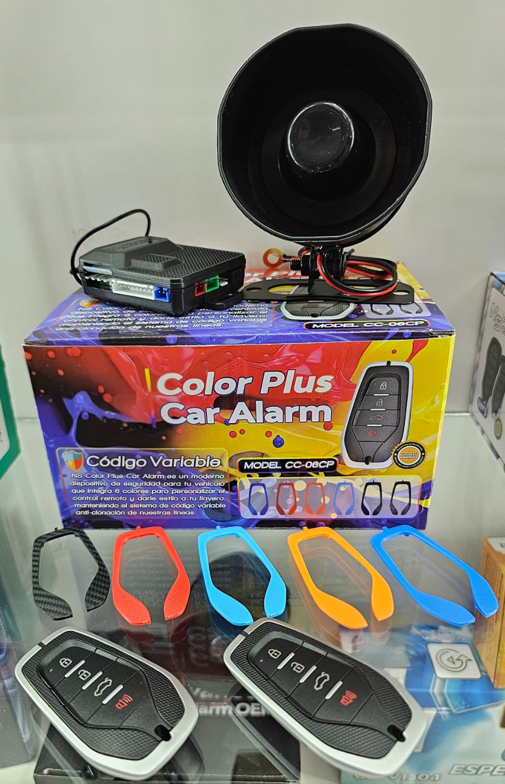 Alarma de auto universal con 6 carcasas para personalizar. cantidad